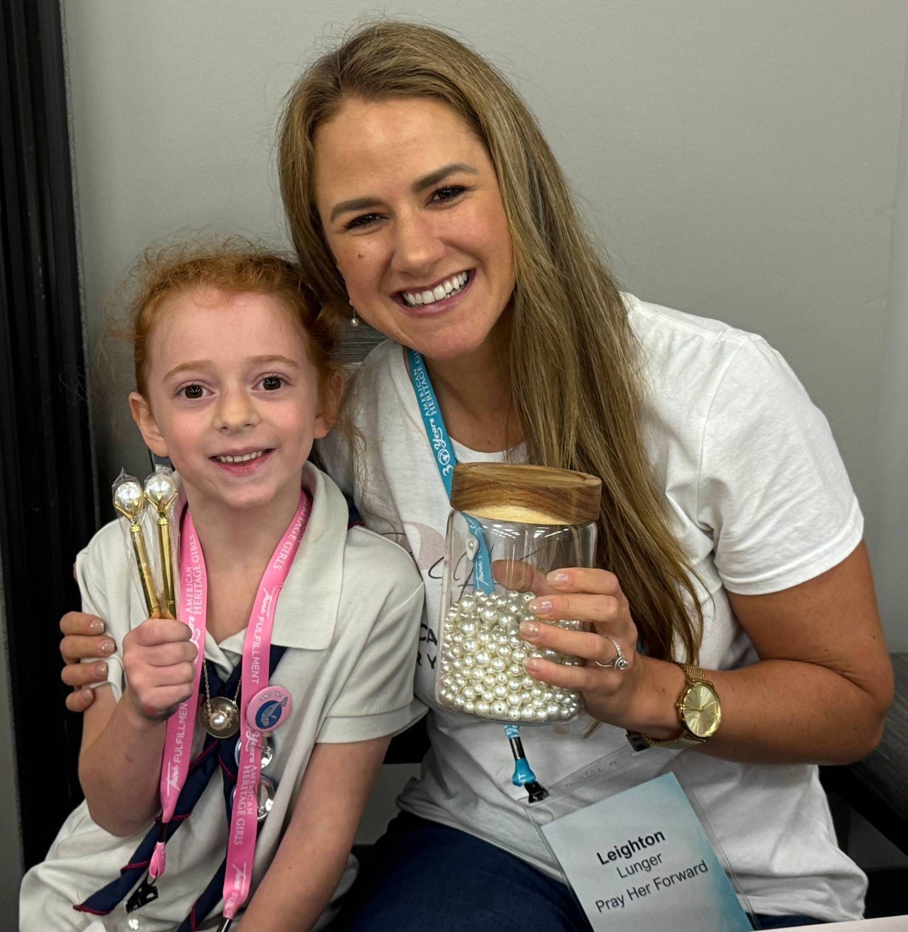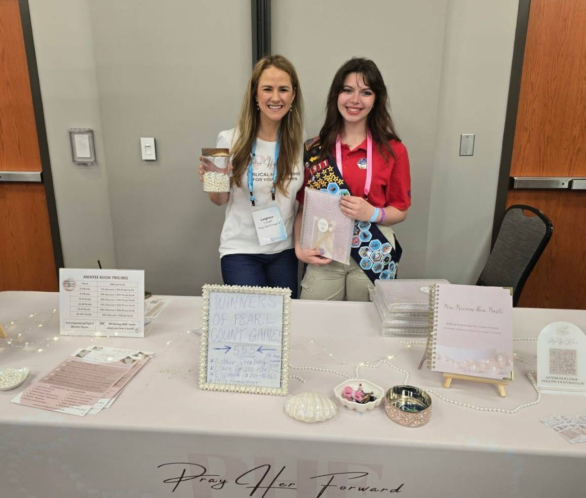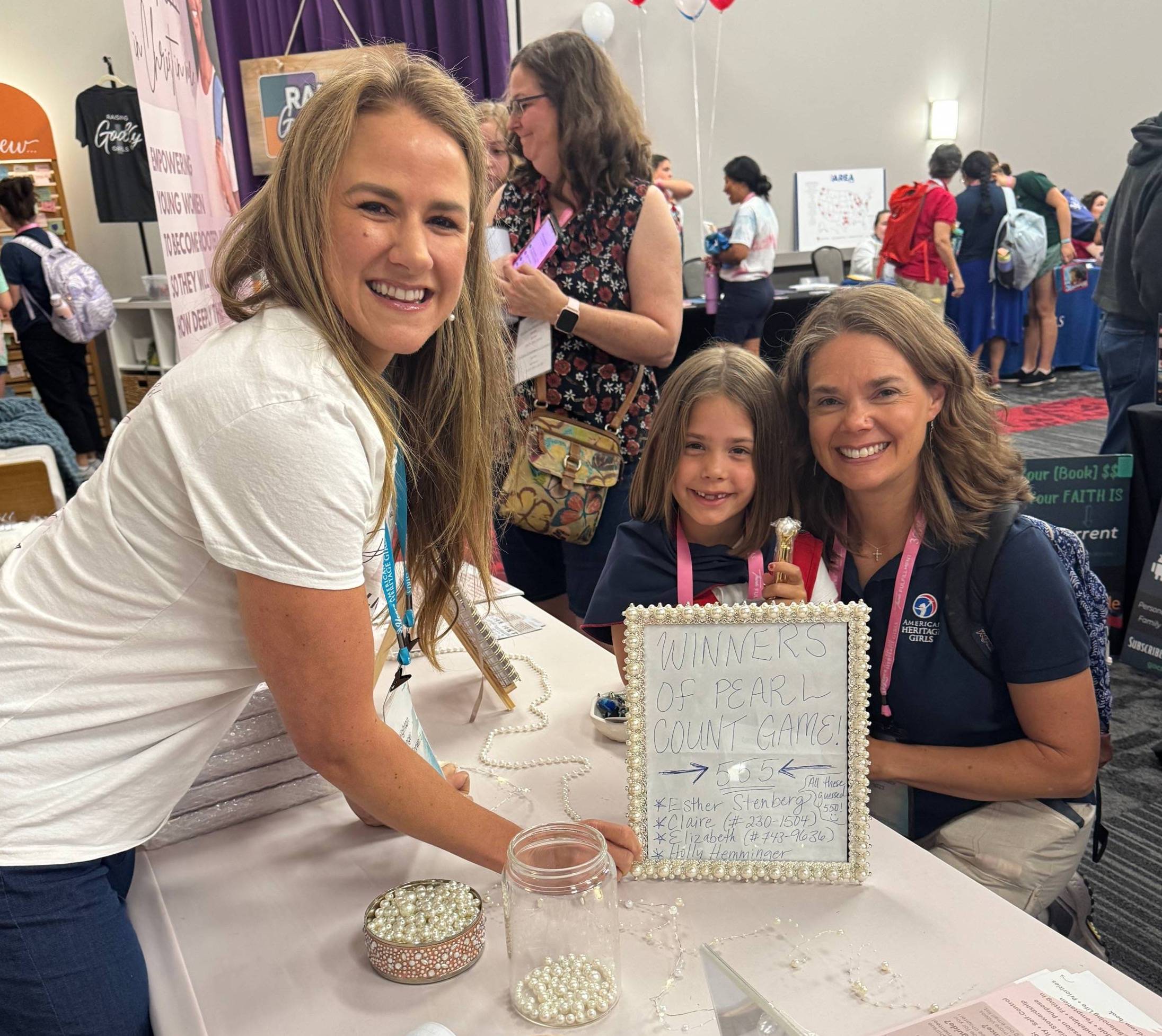 If you’re not familiar with American Heritage Girls (AHG), they are a Christ-centered organization founded in 1995 by parents who desired a faith-based, scout-style program for their daughters. AHG equips young women to grow in integrity and character through service to God, family, community, and country. Their mission aligns so well with the heart of Pray Her Forward! And, the theme of the event was the Pearl of Great Price, so naturally, I just had to be there with my booth exploding with pearls!