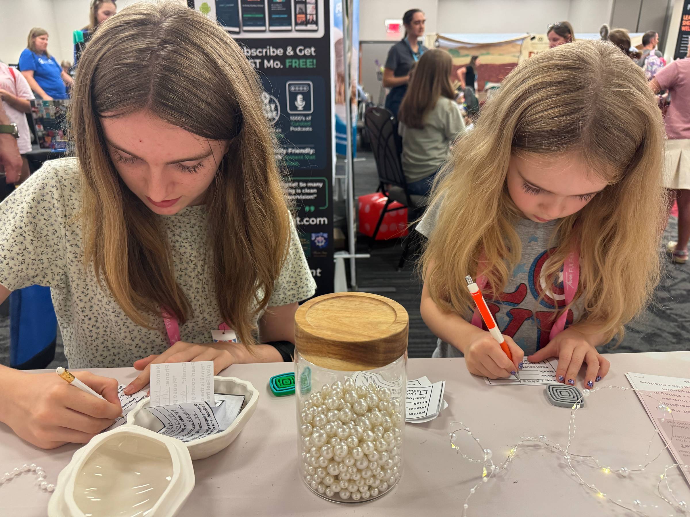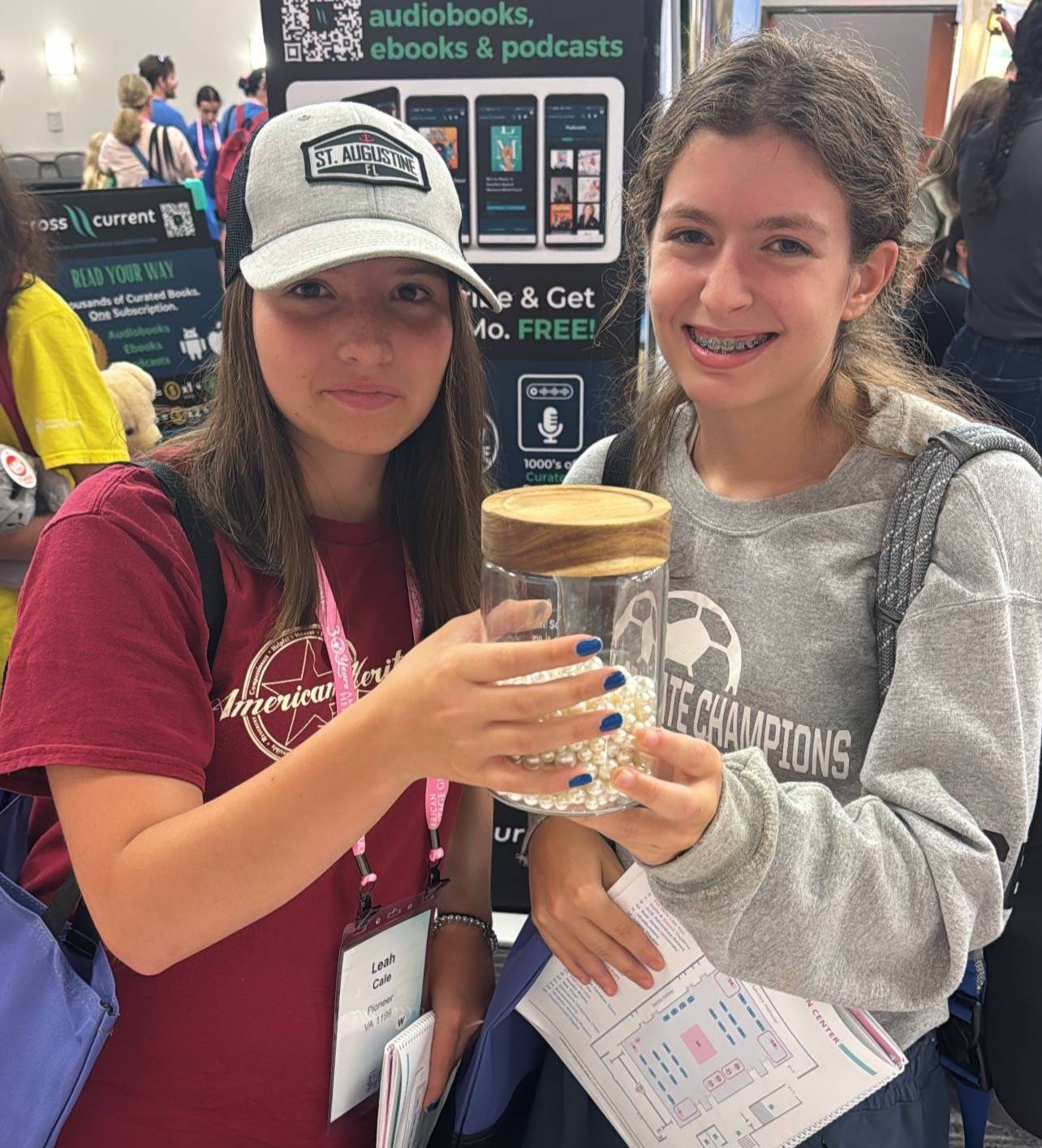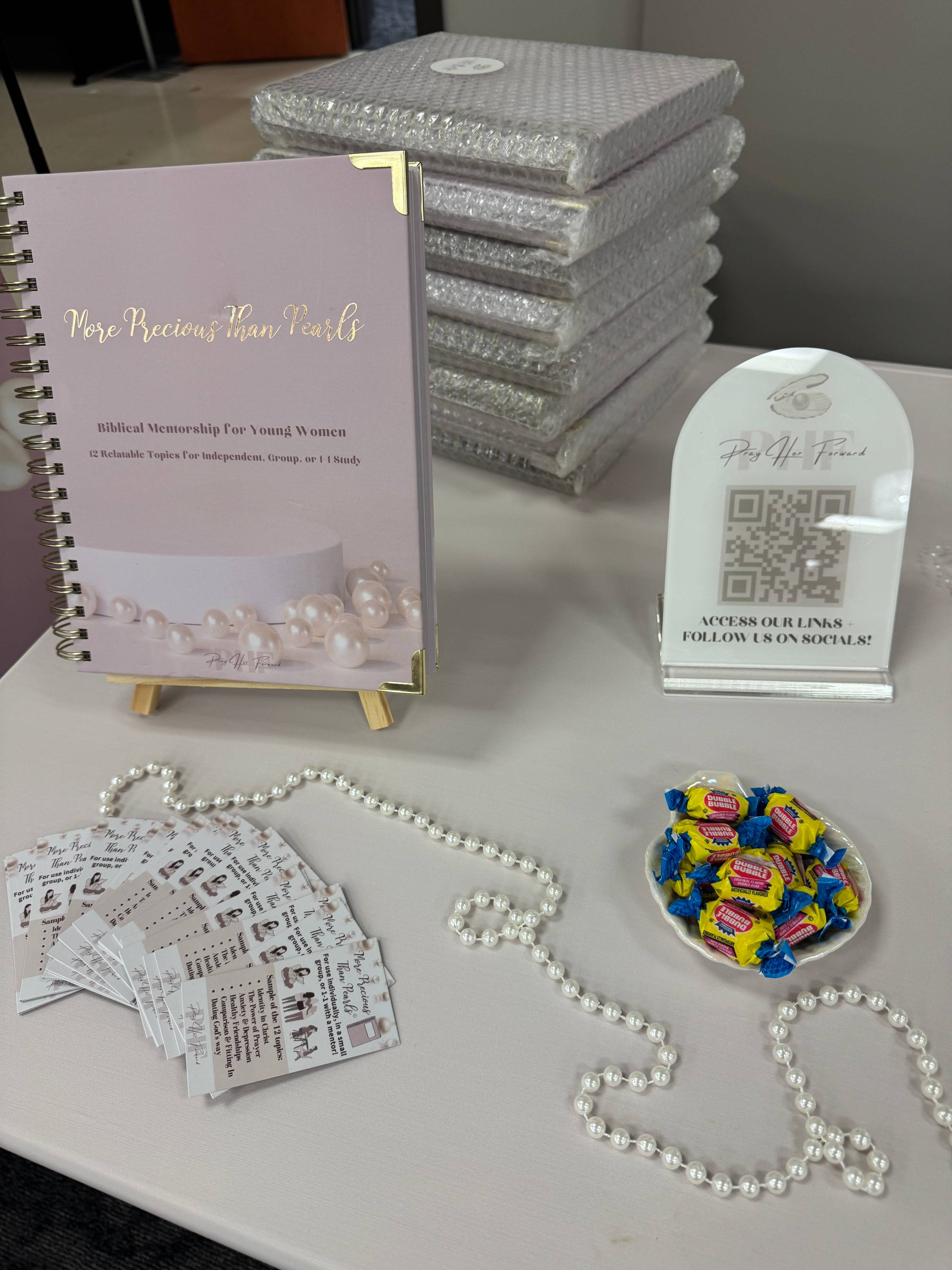 If you’re not familiar with American Heritage Girls (AHG), they are a Christ-centered organization founded in 1995 by parents who desired a faith-based, scout-style program for their daughters. AHG equips young women to grow in integrity and character through service to God, family, community, and country. Their mission aligns so well with the heart of Pray Her Forward! And, the theme of the event was the Pearl of Great Price, so naturally, I just had to be there with my booth exploding with pearls!